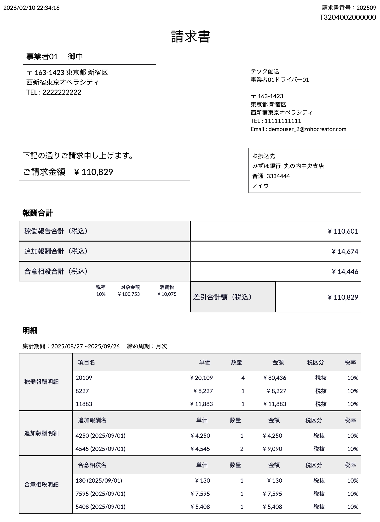 税込価格設定への対応に伴い、請求書と支払明細書の書式が変更になっております。