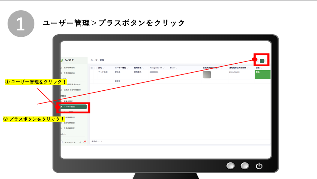 ユーザー管理>プラスボタンをクリック