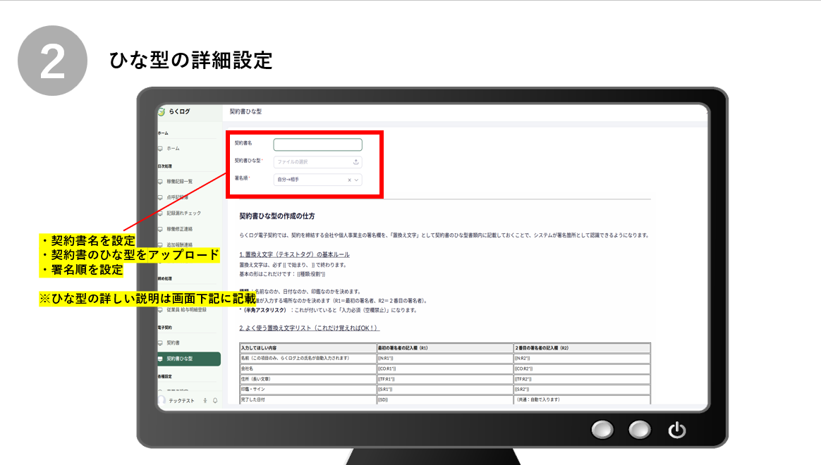 ・署名順を設定※ひな型の詳しい説明は画面下記に記載