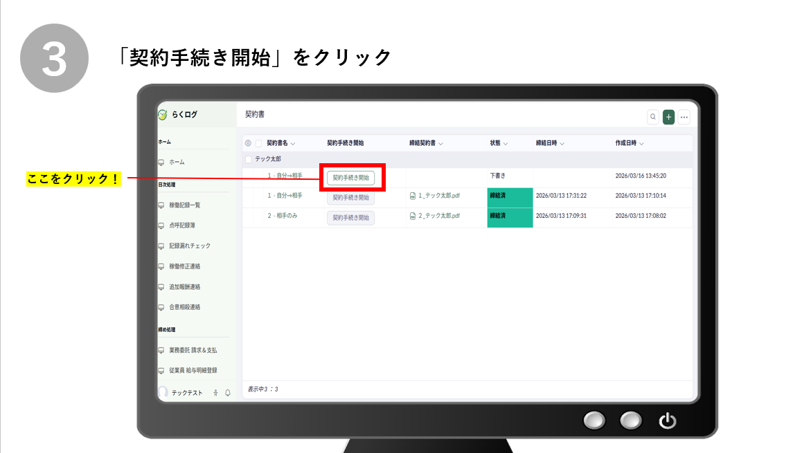 本ページでは、電子契約の署名手順についてご説明いたします。 下記の手順に沿って行ってください。 ※添付資料は印刷して使用いただくことも可能です。 ※契約書発行までの手順はこちら 1 送付メール>署名を開始する 2 必要事項を入力 3 署名 4 完了